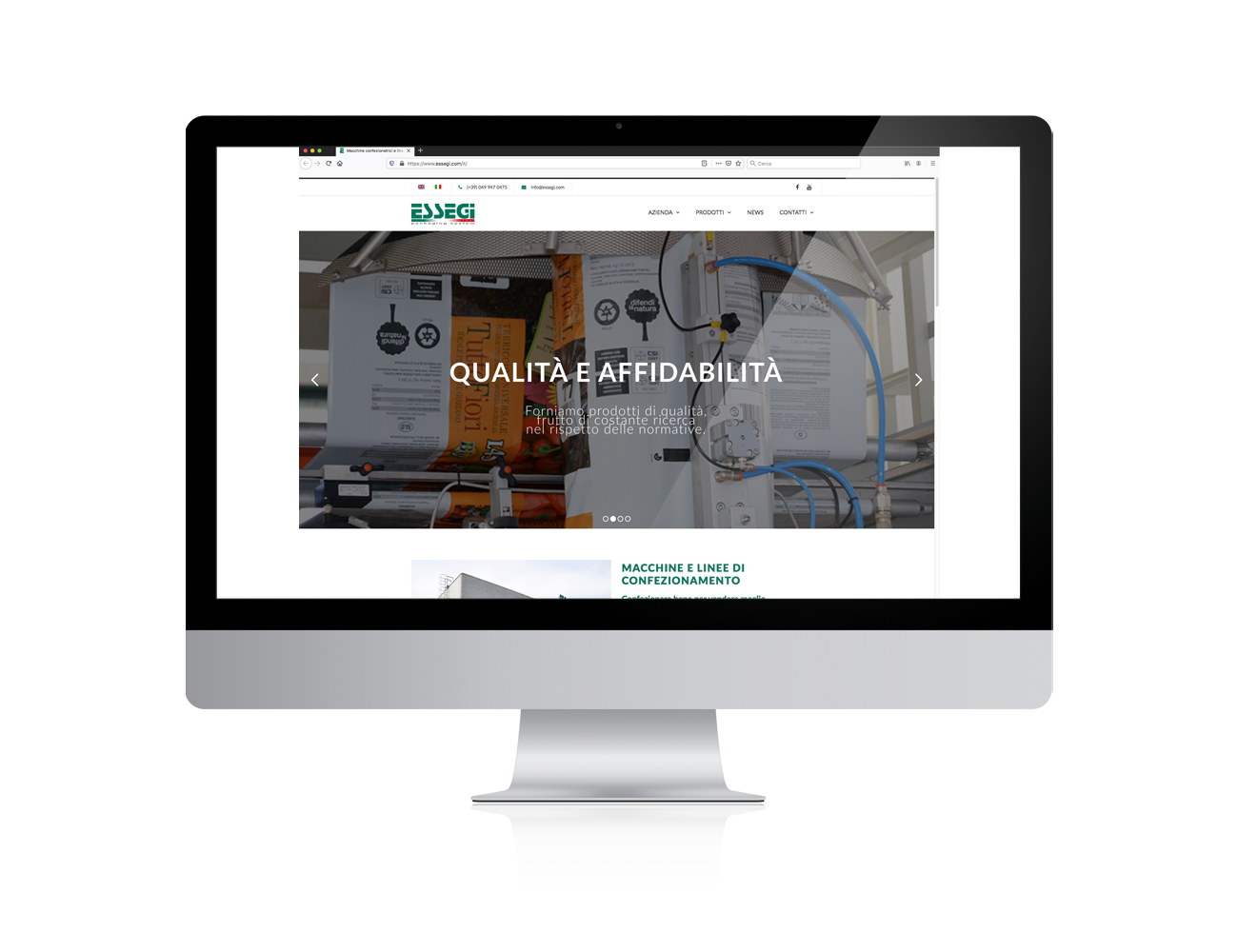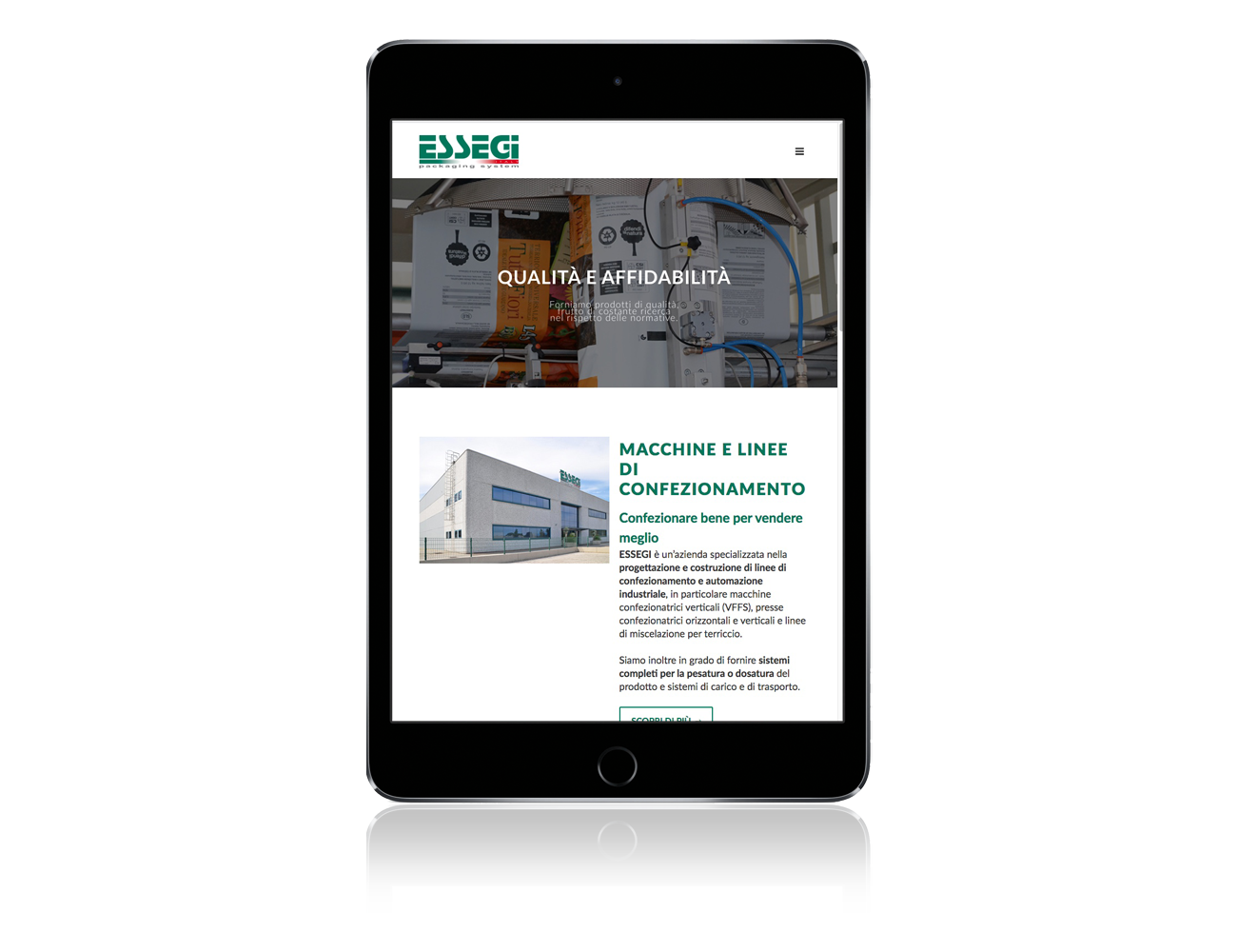 Essegi è un’azienda specializzata nella progettazione e costruzione di linee di confezionamento e automazione industriale, in particolare macchine confezionatrici verticali (VFFS), presse confezionatrici orizzontali e verticali e linee di miscelazione per terriccio. È inoltre in grado di fornire sistemi completi per la pesatura o dosatura del prodotto e sistemi di carico e trasporto.